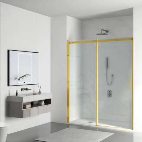 BALNEO Drzwi prysznicowe do wnęki przesuwane 100x200cm profile złote