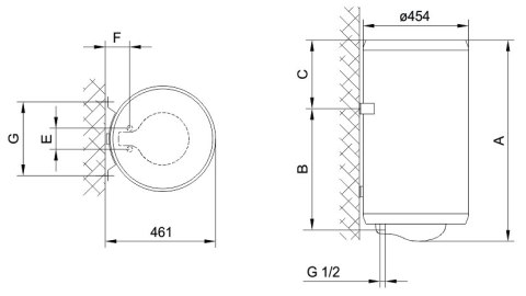 - Ogrzewacz jest pionowy - wiszący.