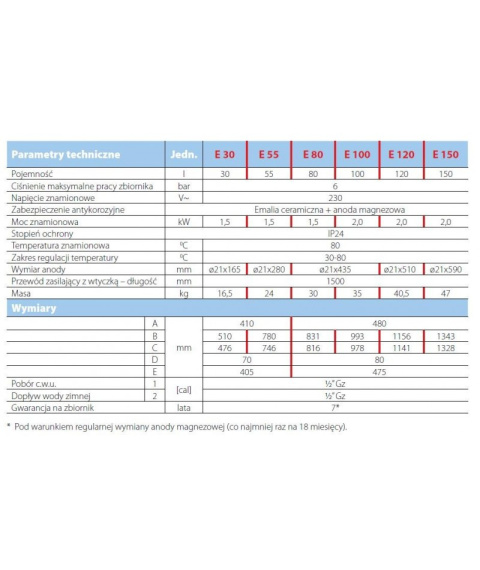* Zużyty bojler należy oddać do punktu zbiórki odpadów elektronicznych.