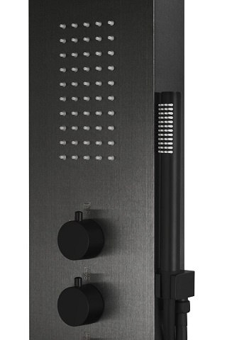 PANEL PRYSZNICOWY CZARNY MARKI CORSAN Z HYDROMASAŻEM I OŚWIETLENIEM LED