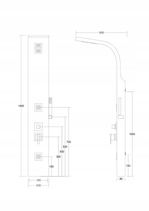 - Wysokość panelu 140 cm