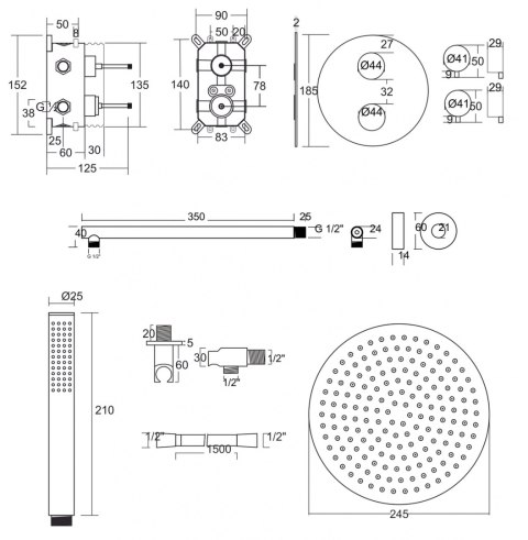 CORSAN Zestaw prysznicowy podtynkowy czarny z termostatem Z03TBL: