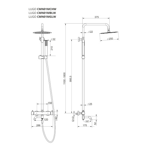 - Kolumna natryskowa ma regulowaną wysokość: od 110 do 180 cm.