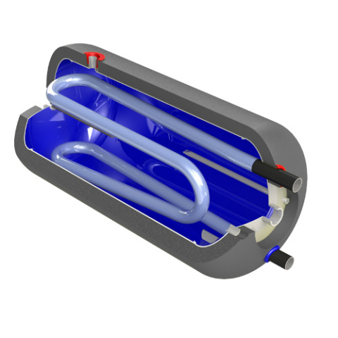 - Ogrzewacz jest poziomy z podwójną wężownicą.