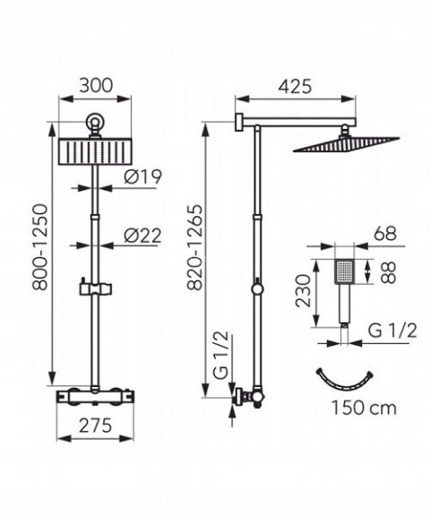 FERRO Zestaw prysznicowy z termostatem czarny NP75SQ-TRV7U-BL: