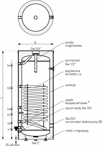 Wymiennik c.w.u. z wężownicą spiralną, stojący 26-148000: