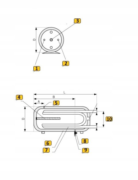 Źródłem ciepła w wymienniku może być dowolny kocioł c.o., opcjonalnie także grzałka elektryczna. Komplet elektryczny GE z grzałką i sterownikiem zapewnia komfort użytkowania ciepłej wody niezależnie od pracy kotła c.o. Instalowany jest w dennicy, co pozwala na łatwy montaż w dowolnym momencie. Możliwe jest również zamówienie wymiennika z wyjściem na c.o. i podkowę w jednej dennicy.