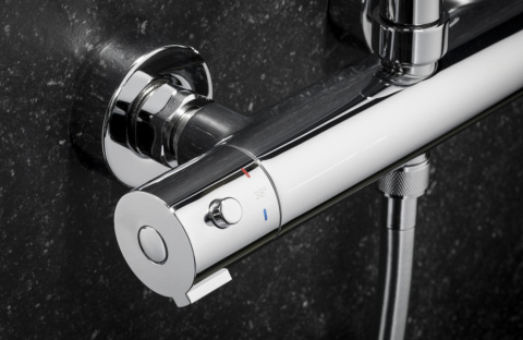 Ergonomiczne pokrętła w baterii termostatycznej Moza ustawione względem użytkownika pod kątem 45 st. ułatwiają regulację strumienia i temperatury. Za co odpowiada wysokiej jakości głowica termostatyczna Sedal. Dodatkowo innowacyjny korpus typu Cool Touch chroni przed oparzeniem. Wytrzymały, odporny na uszkodzenia wąż PVC z wygodną nakrętką montażową. 3-funkcyjna rączka natrysku z zabezpieczeniem przed porysowaniem mocowania węża. Natrysk jest wyposażony w regulowany rozstaw mocowań ściennych.