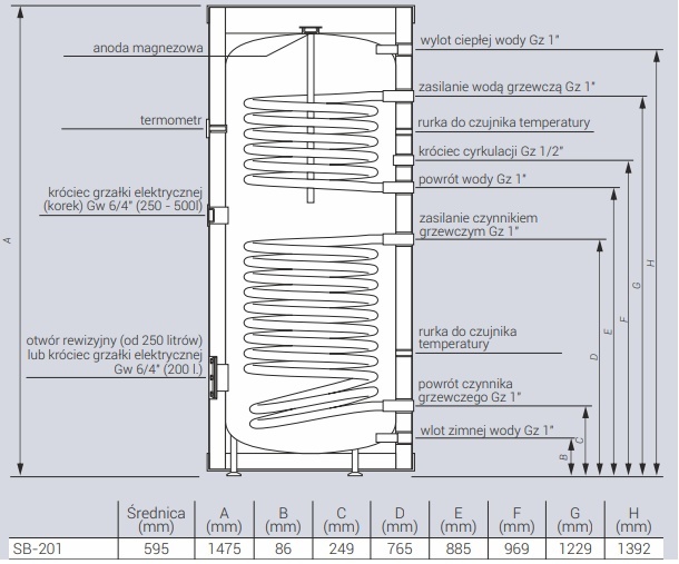 ✔Szybsze nagrzewanie wody dzięki wężownicy spiralnej o dużej powierzchni.