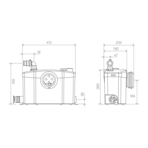Sanipro XR umożliwia przetłoczenie ścieków na wysokość do 5 m i odległość do 100 m. Jest to jeden z najcichszych pomporozdrabniaczy dostępnych na rynku o głośności zaledwie 46 dB (A).