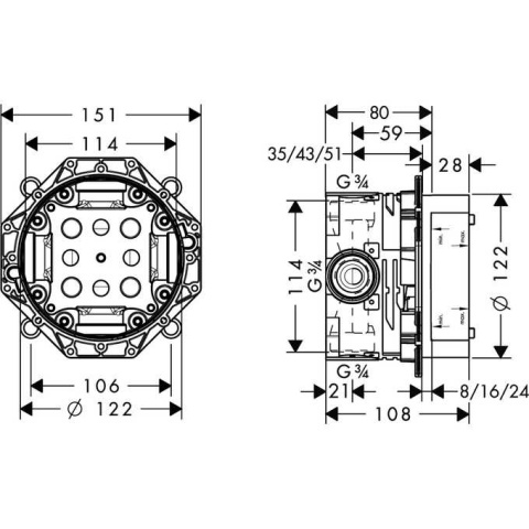 Bateria HANSGROHE z termostatem 15708000 z elementem podtynkowym