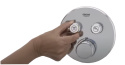 GROHE SmartControl to innowacyjny system prysznicowy, który umożliwia w prosty sposób regulować natężenie i temperaturę wody, a także pozwala na wybór preferowanego strumienia i przełączanie pomiędzy deszczownicą i prysznicem ręcznym. Wystarczy dotknąć pierścień GROHE ProGrip na uchwycie, aby zwiększyć strumień wody – z wariantu ekologicznego do pełnego przepływu – lub go zmniejszyć. Naciśnij ponownie, aby zatrzymać wodę. SmartControl posiada również funkcję zapamiętywania preferowanych ustawień.